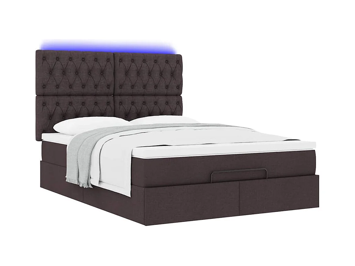 Cadre de lit ottoman avec matelas marron foncé 140x200 cm tissu