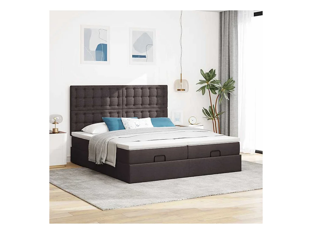 Cadre de lit ottoman avec matelas marron foncé 200x200 cm tissu