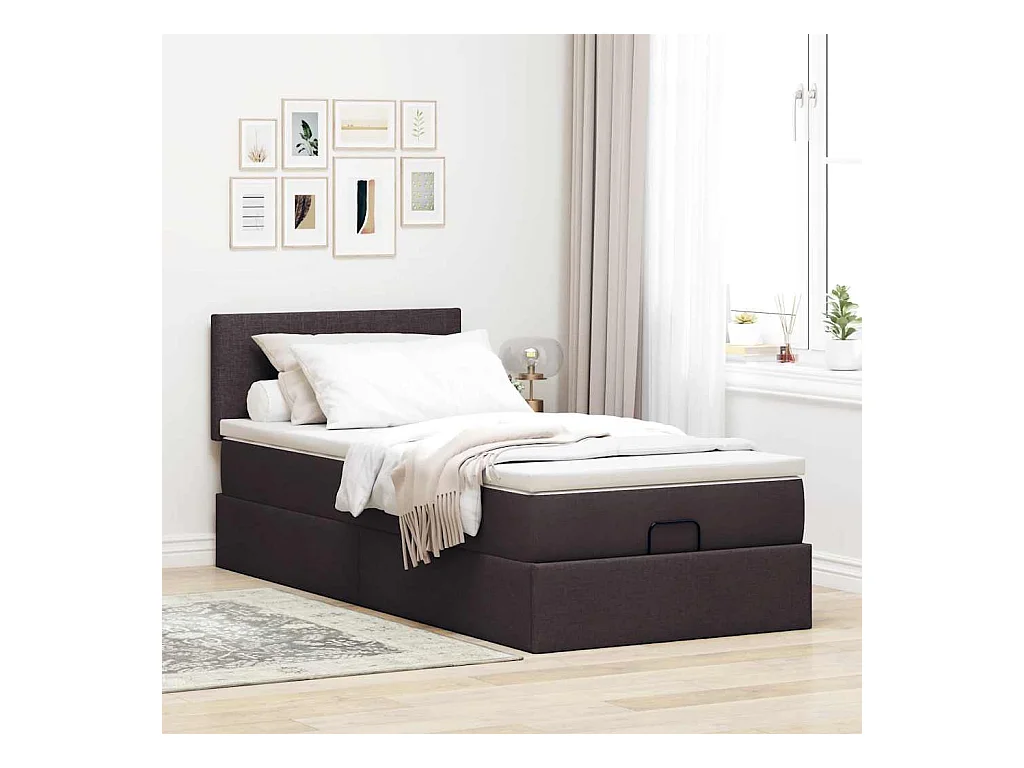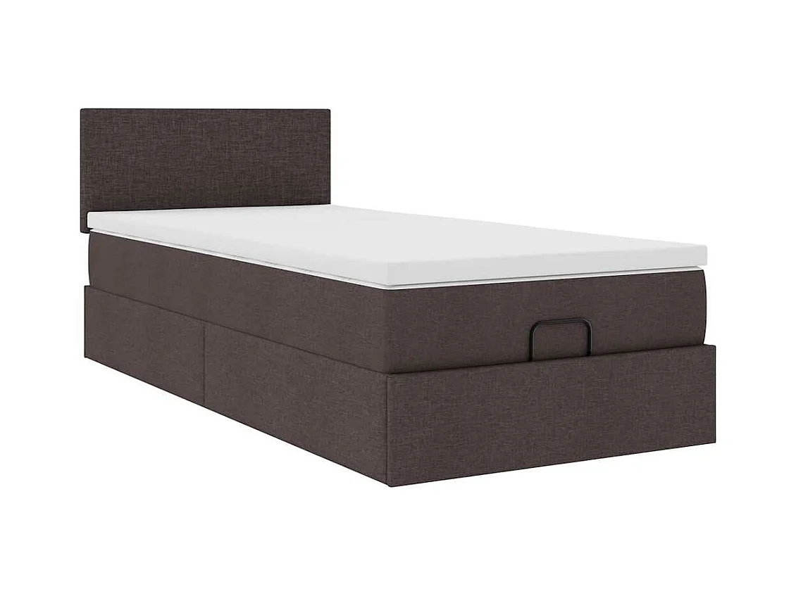 Cadre de lit ottoman avec matelas marron foncé 90x190 cm tissu
