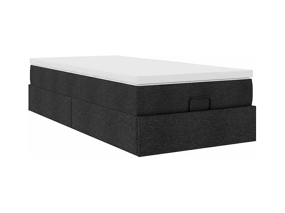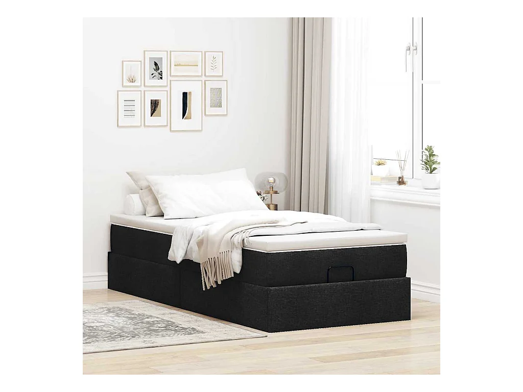 Cadre de lit ottoman avec matelas noir 100x200cm tissu