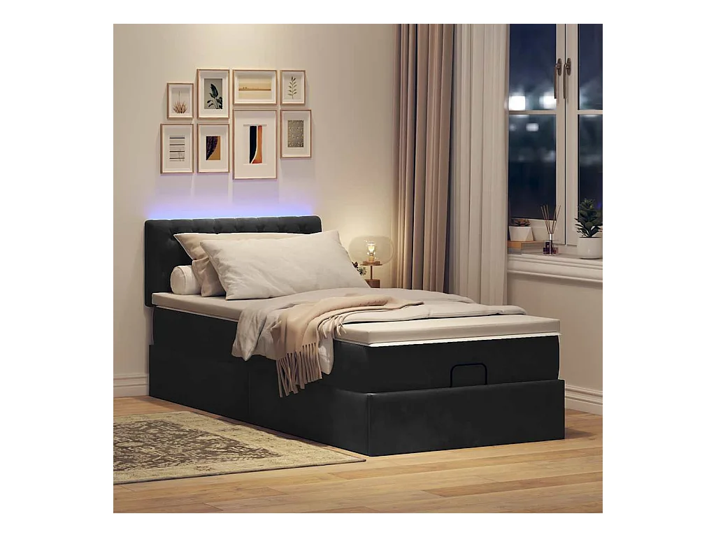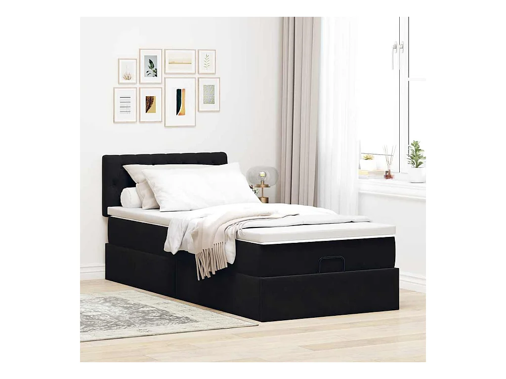 Cadre de lit ottoman avec matelas noir 100x200cm velours