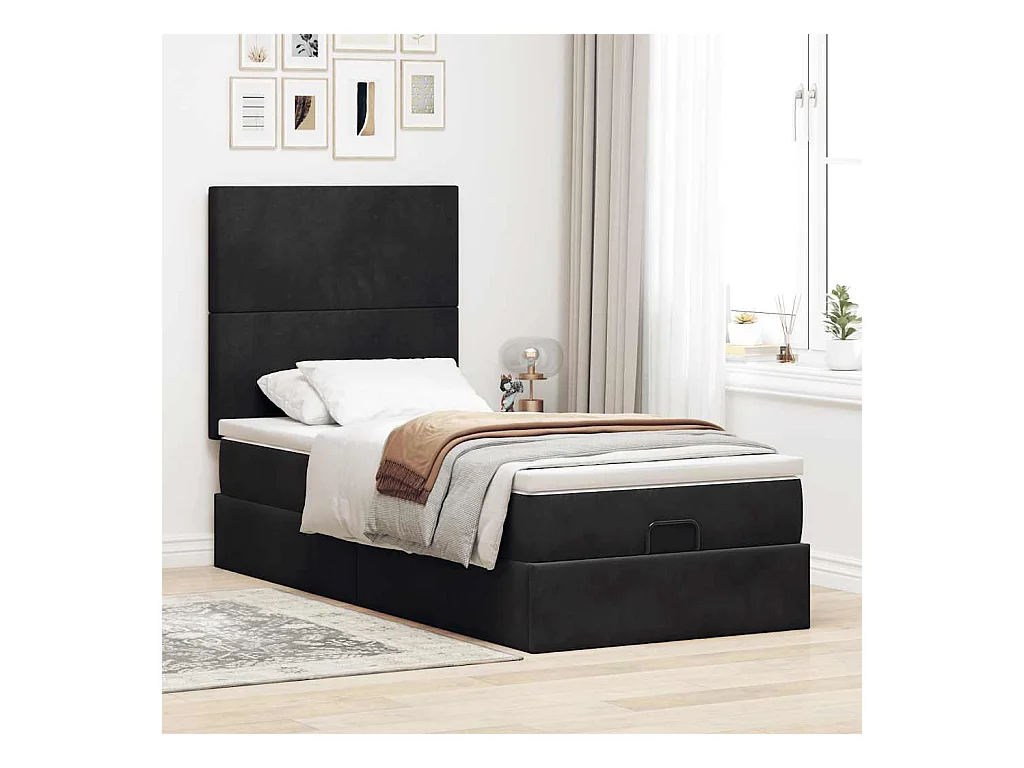 Cadre de lit ottoman avec matelas noir 100x200cm velours