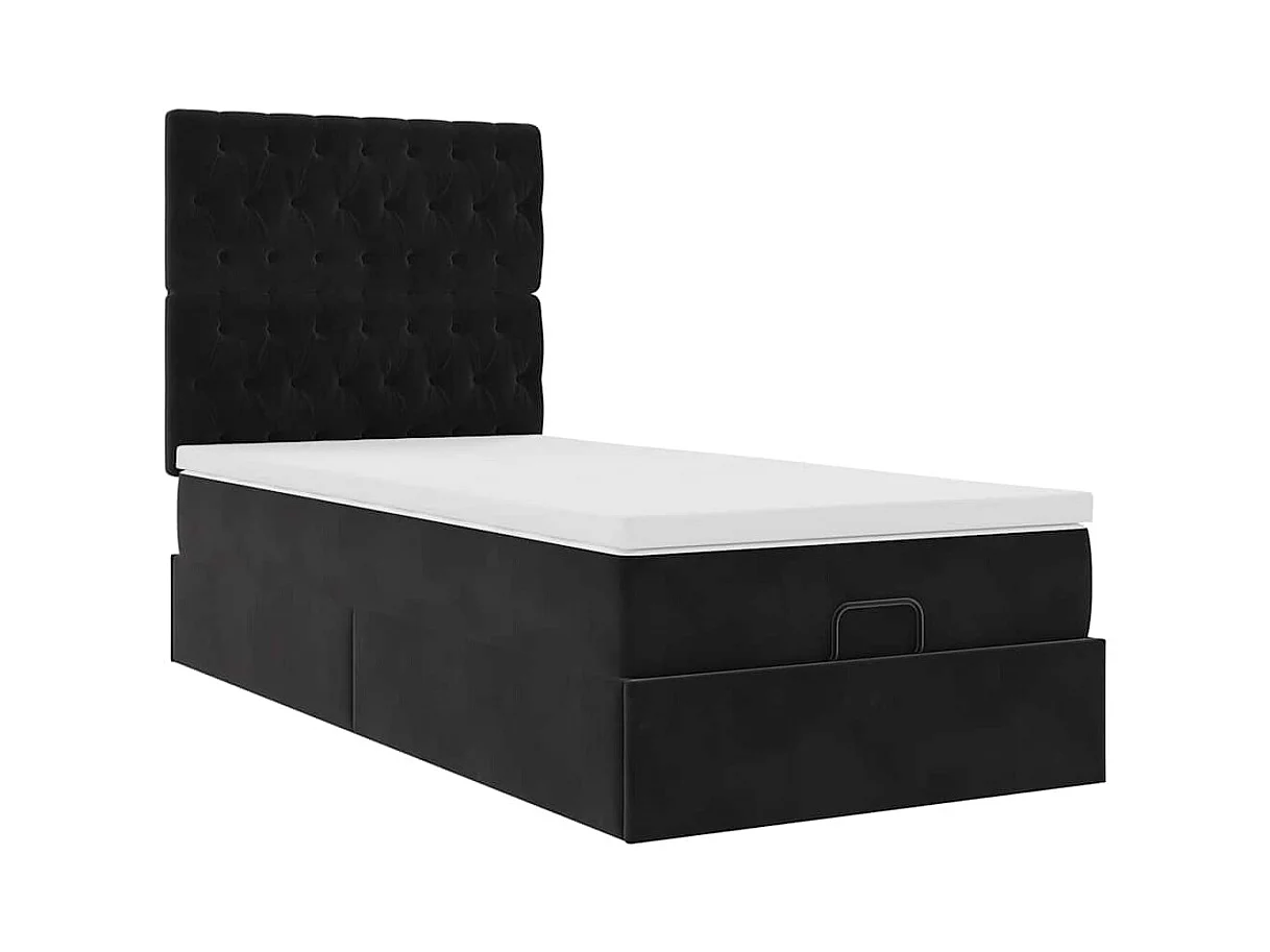 Cadre de lit ottoman avec matelas noir 100x200cm velours