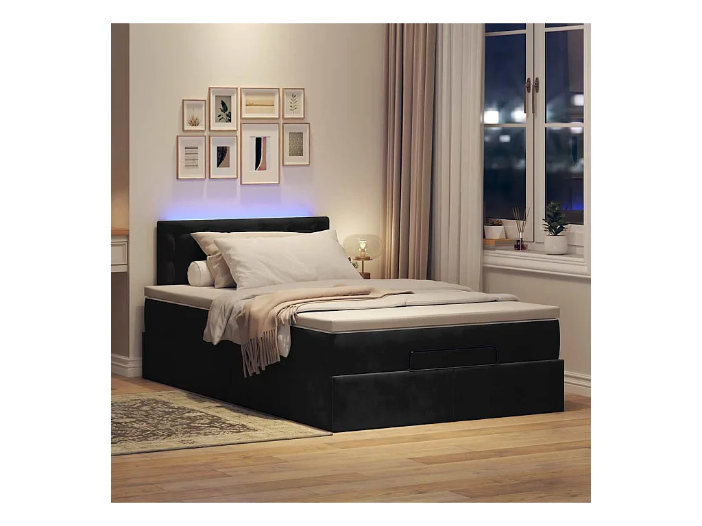 Cadre de lit ottoman avec matelas noir 120x200 cm velours