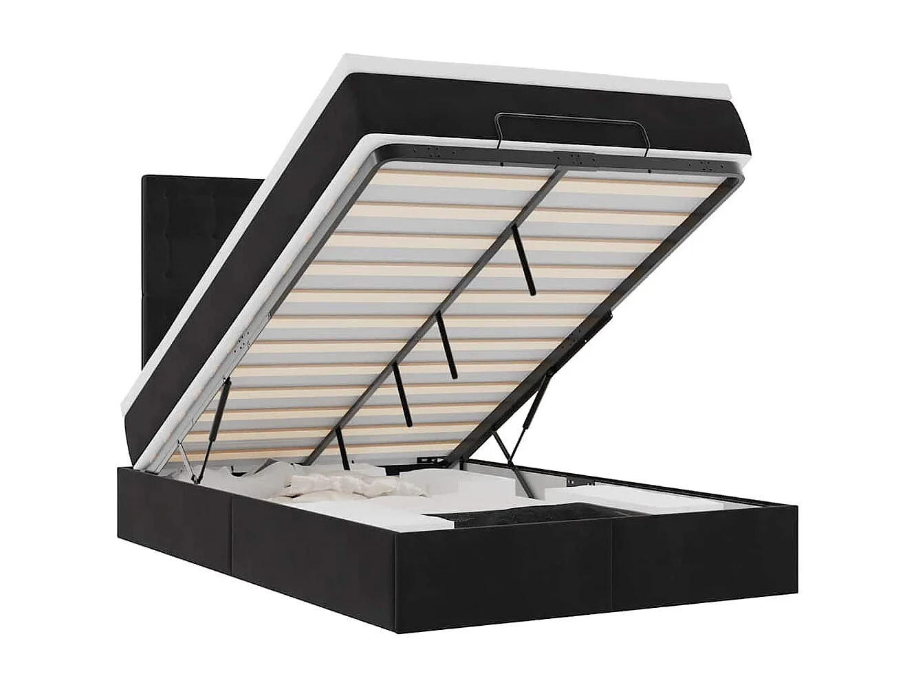 Cadre de lit ottoman avec matelas noir 120x200 cm velours