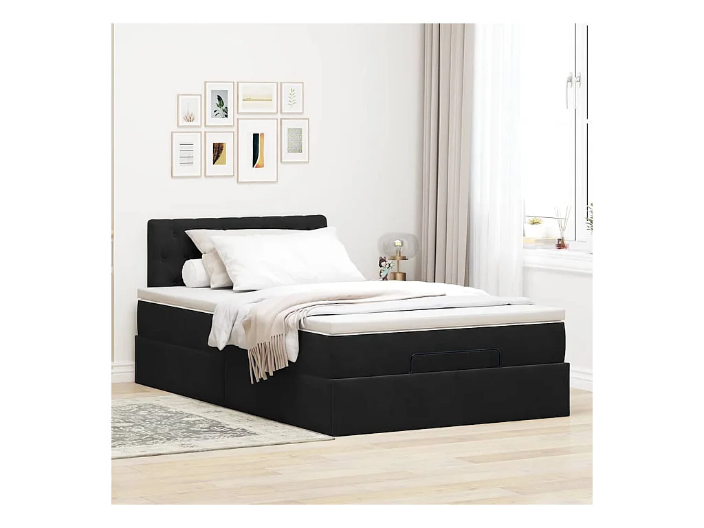 Cadre de lit ottoman avec matelas noir 120x200 cm velours