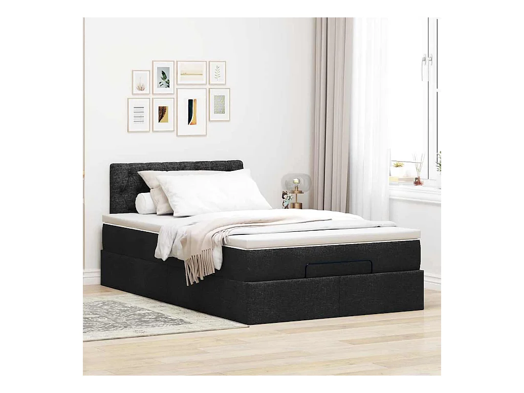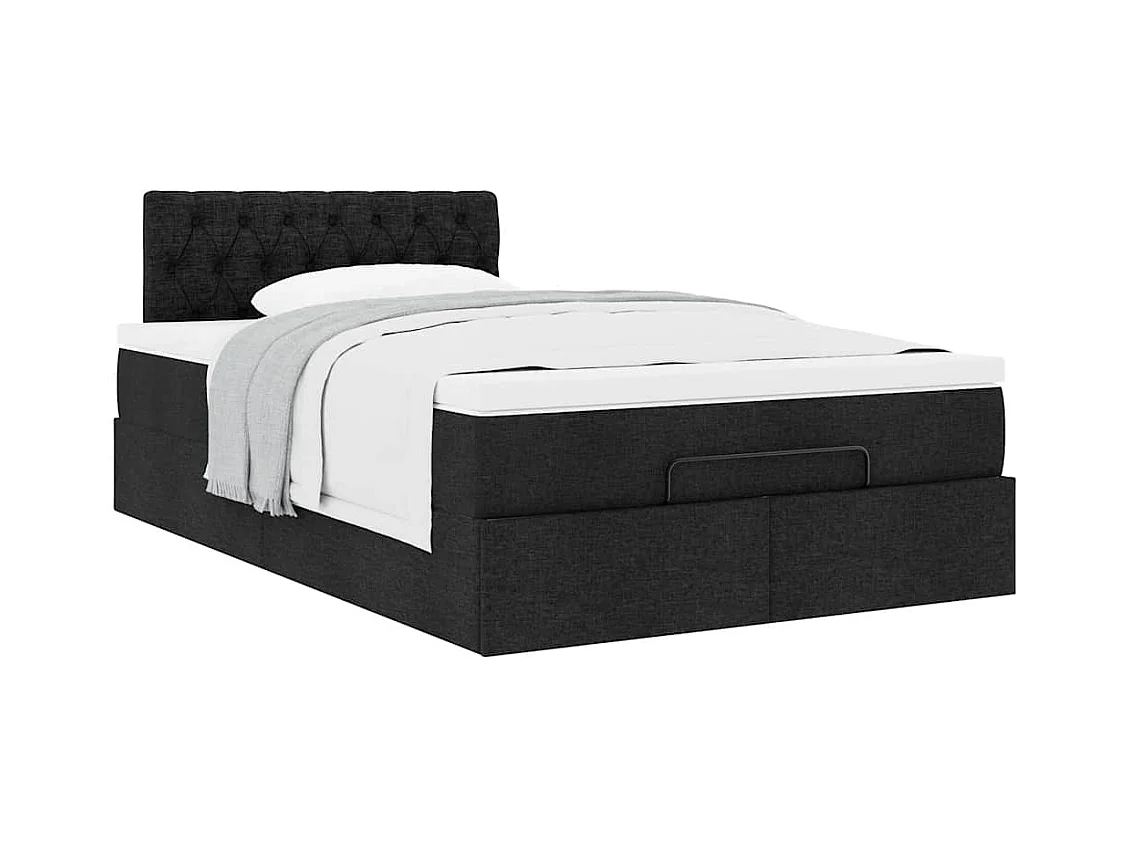 Cadre de lit ottoman avec matelas noir 120x200cm tissu