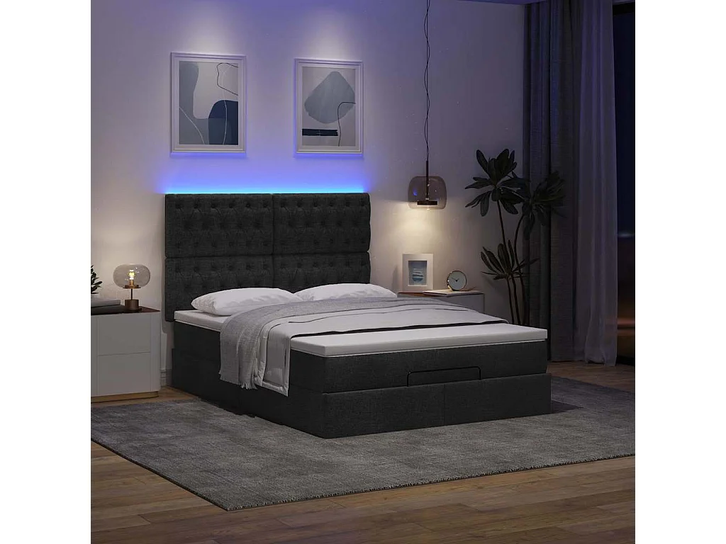 Cadre de lit ottoman avec matelas noir 140x190 cm tissu