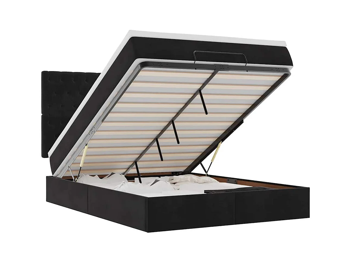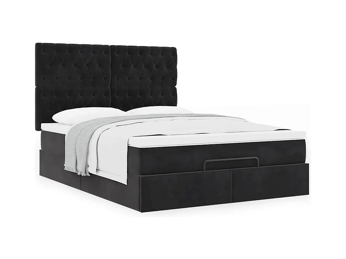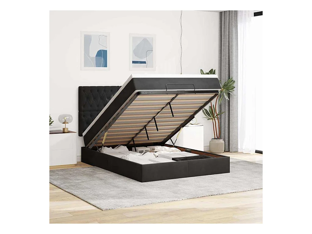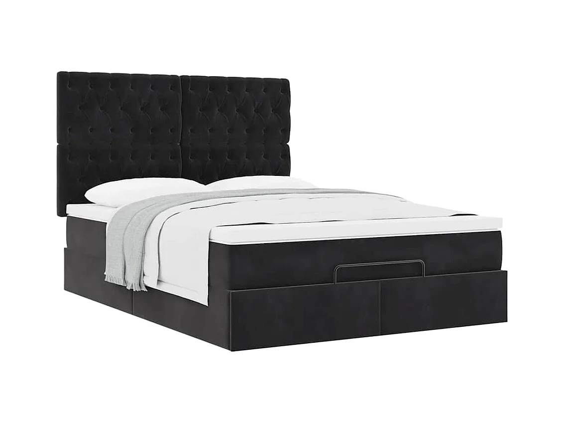 Cadre de lit ottoman avec matelas noir 140x190 cm velours