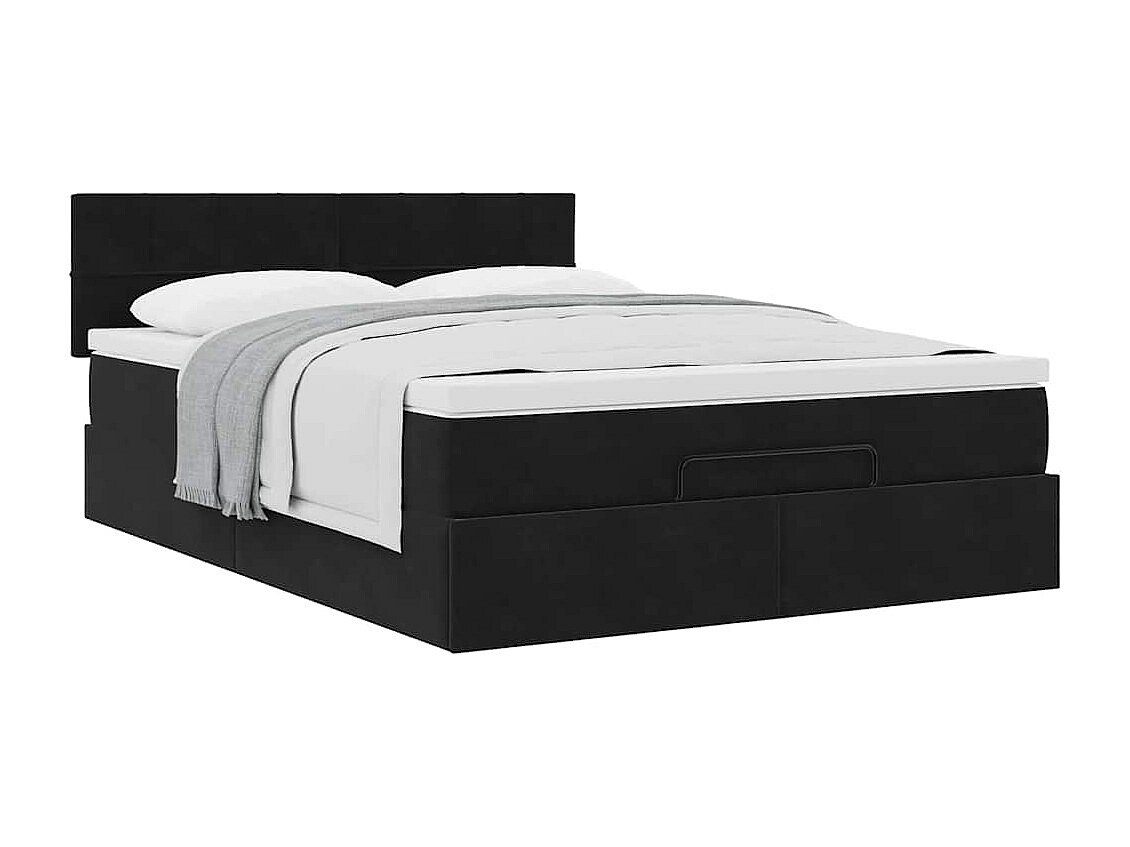 Cadre de lit ottoman avec matelas noir 140x200 cm velours