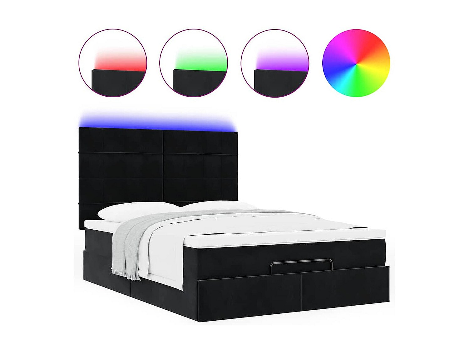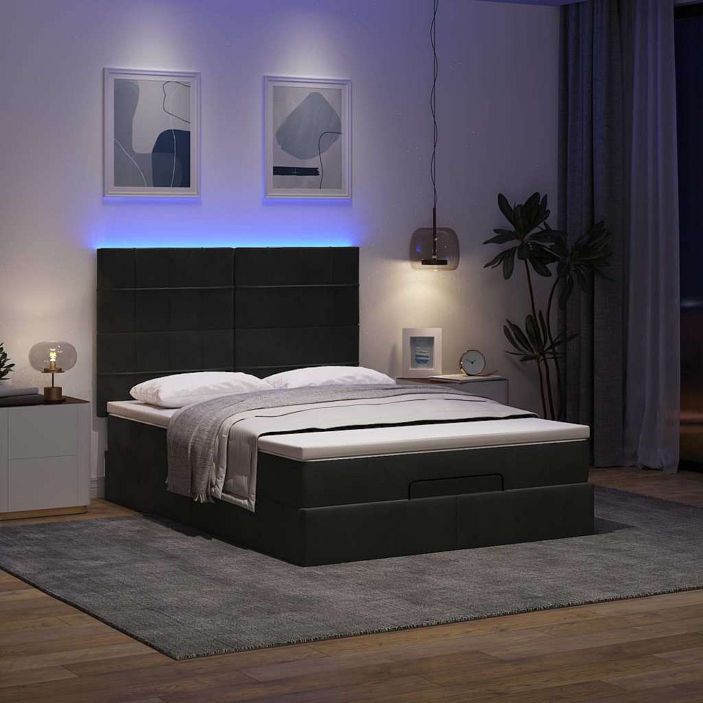 Cadre de lit ottoman avec matelas noir 140x200 cm velours