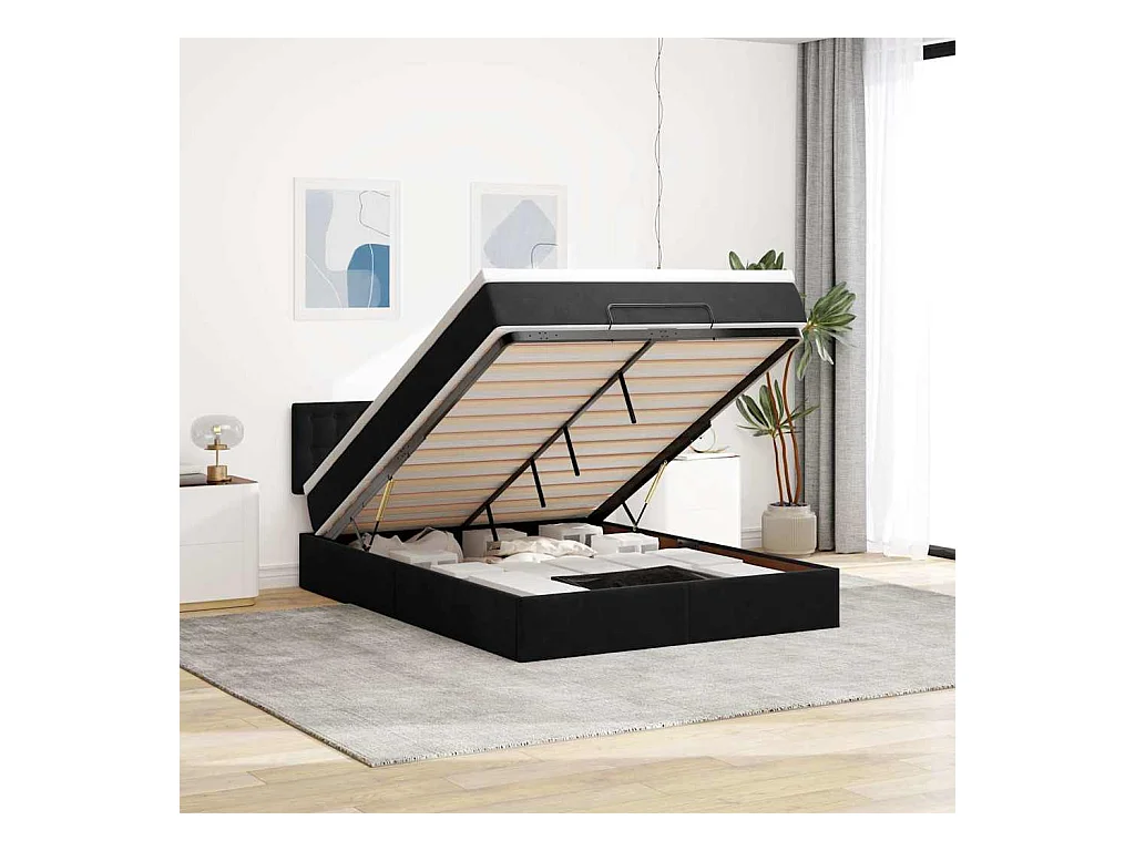 Cadre de lit ottoman avec matelas noir 140x200 cm velours