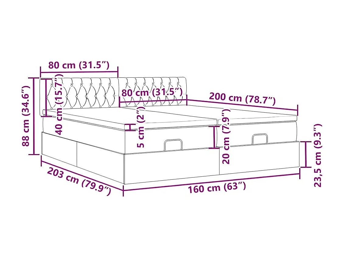 Cadre de lit ottoman avec matelas noir 160x200 cm similicuir