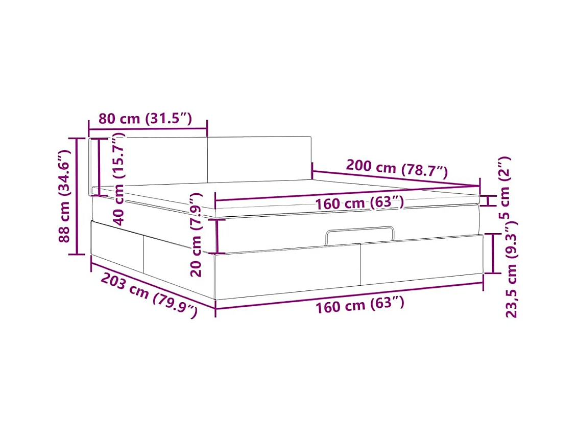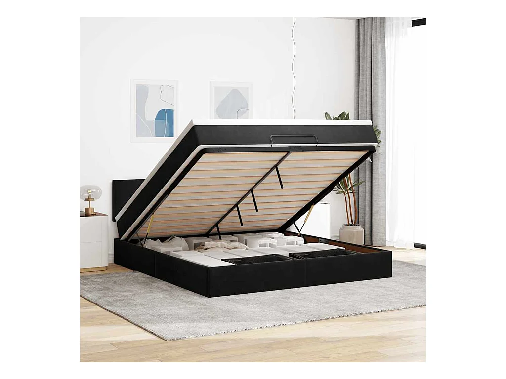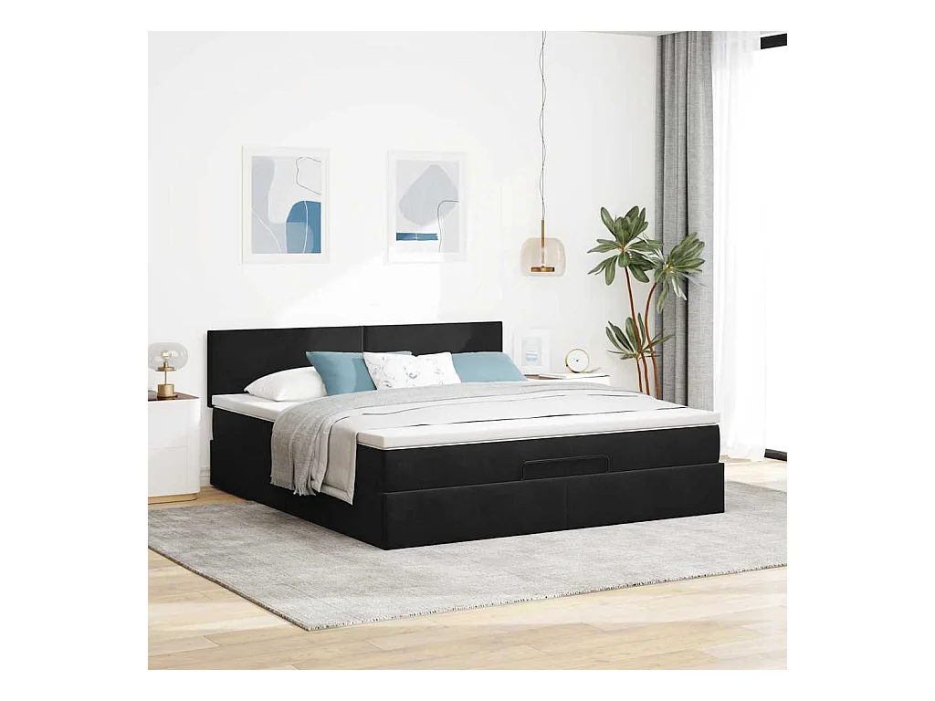 Cadre de lit ottoman avec matelas noir 160x200 cm velours