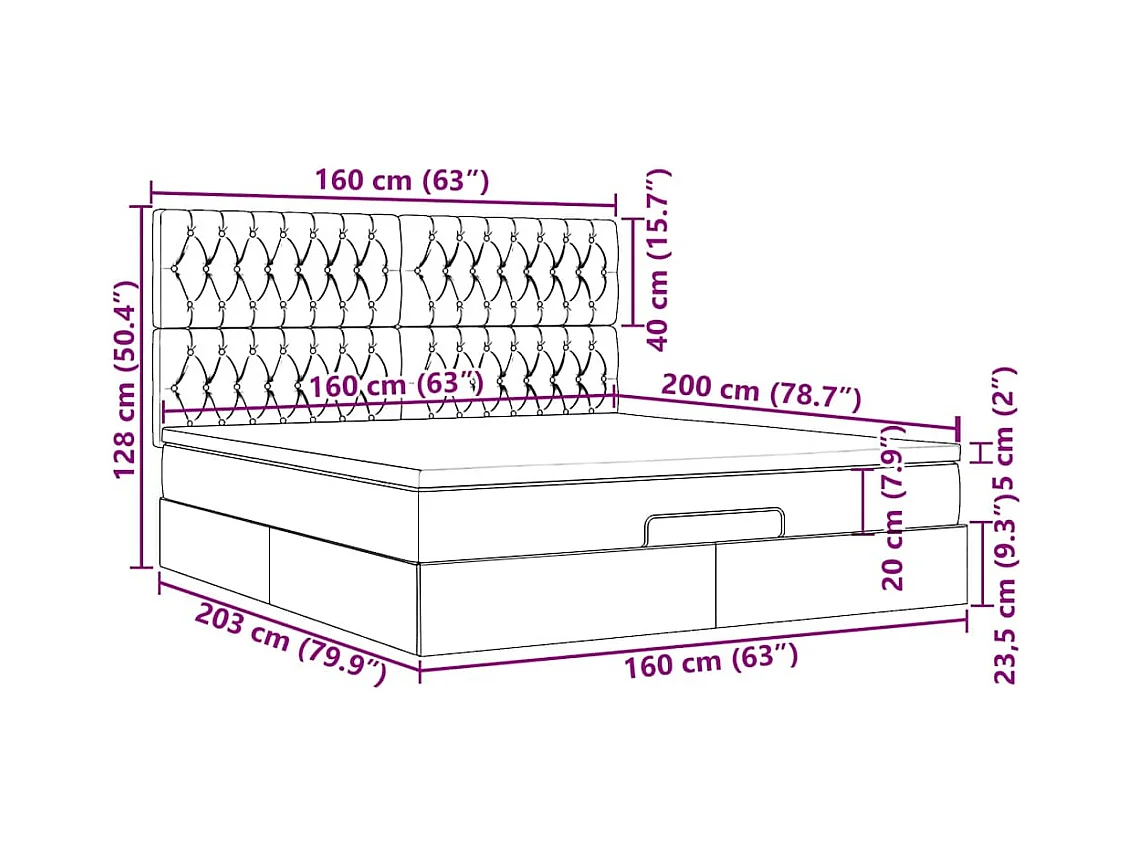 Cadre de lit ottoman avec matelas noir 160x200 cm tissu
