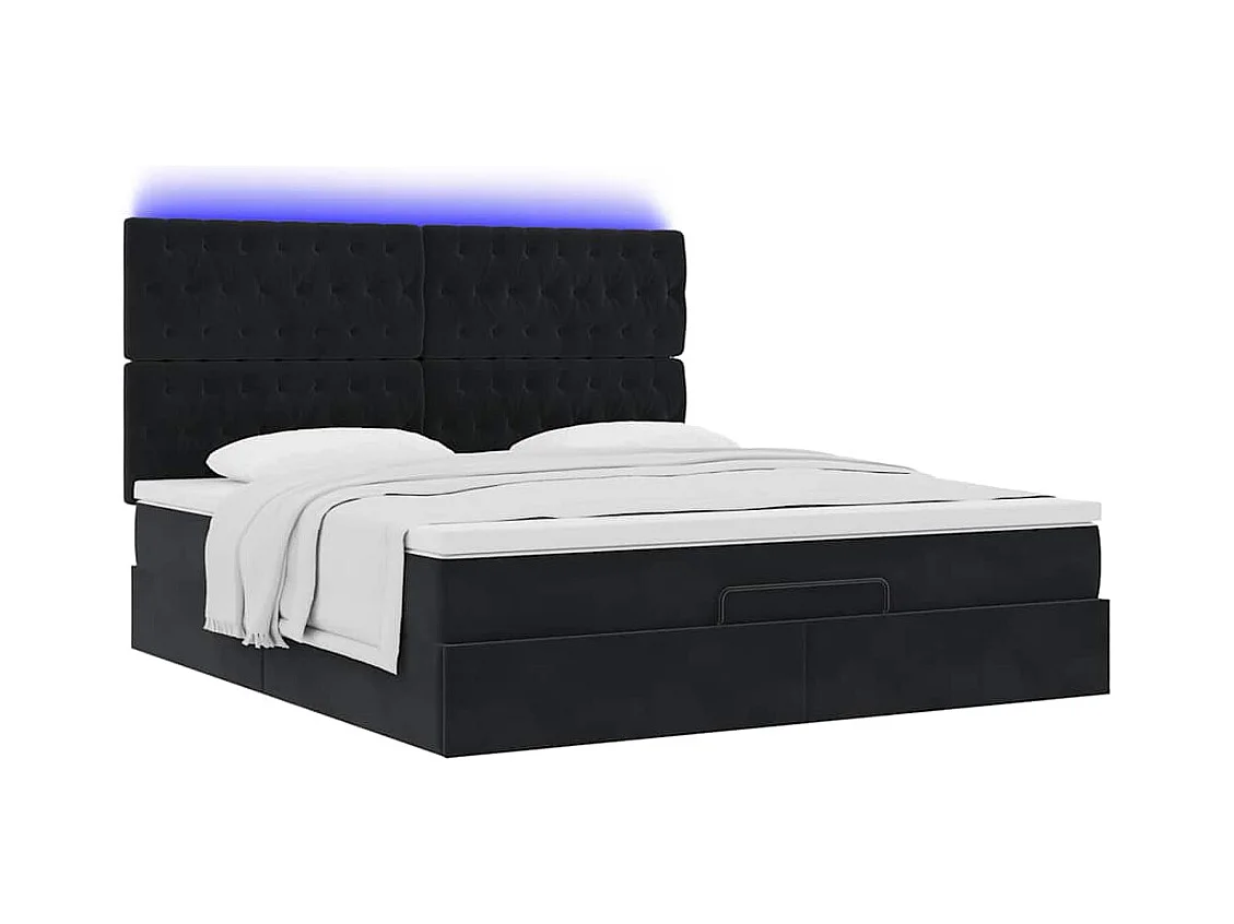 Cadre de lit ottoman avec matelas noir 160x200 cm velours