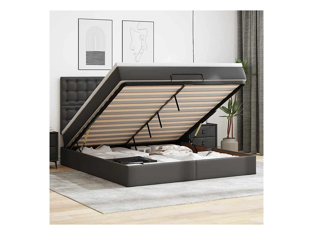 Cadre de lit ottoman avec matelas noir 180x200 cm similicuir