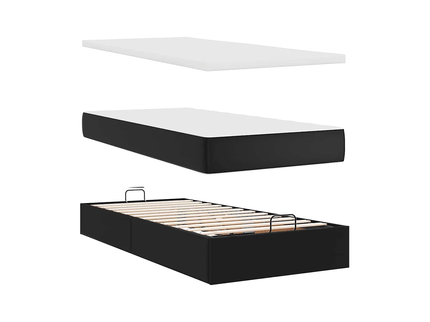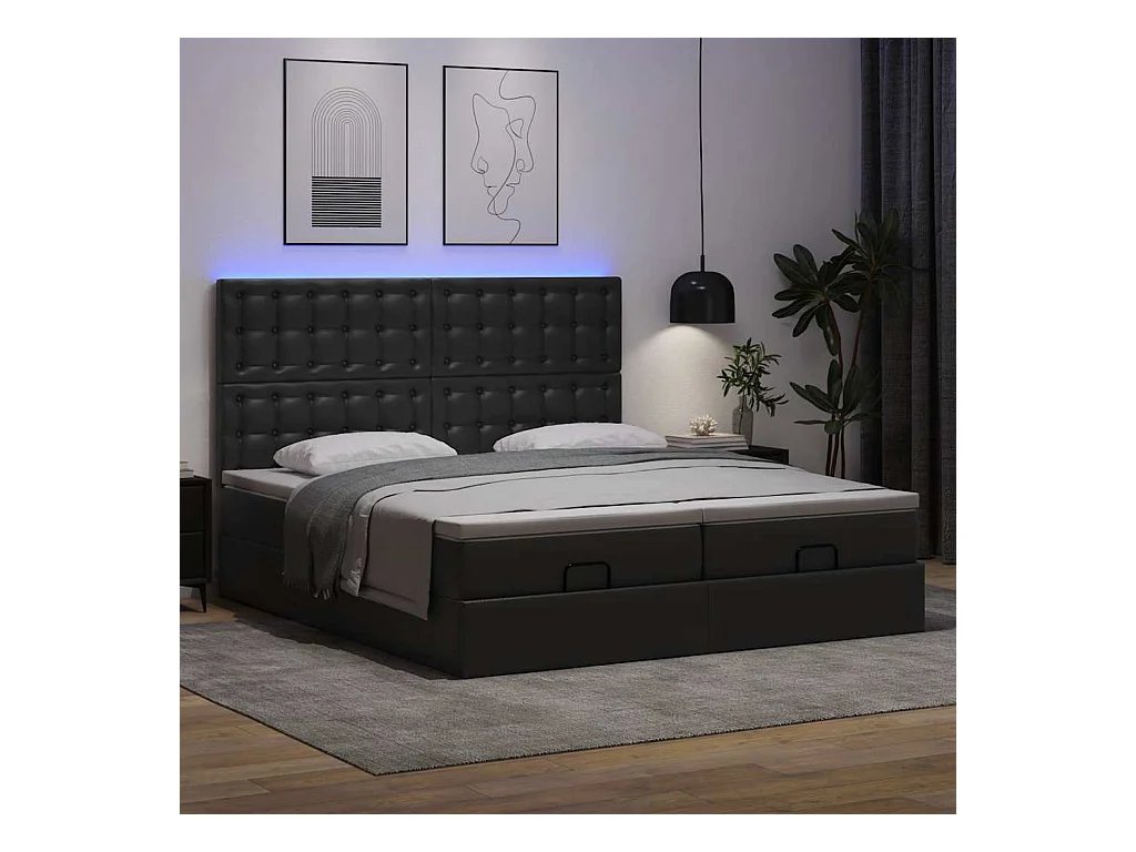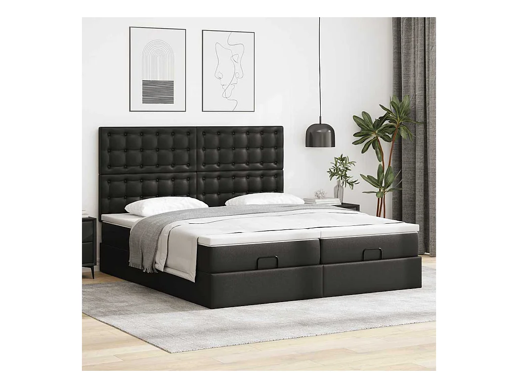 Cadre de lit ottoman avec matelas noir 180x200 cm similicuir