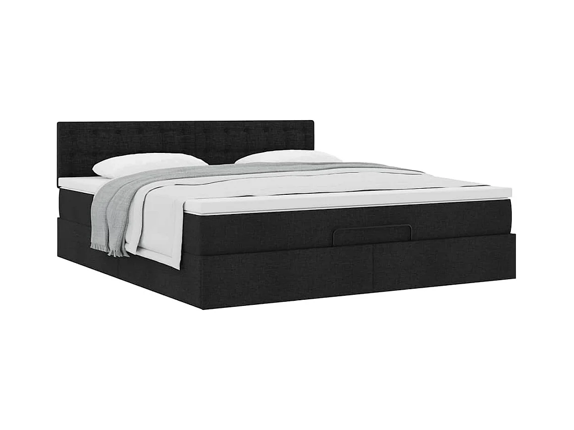 Cadre de lit ottoman avec matelas noir 180x200cm tissu