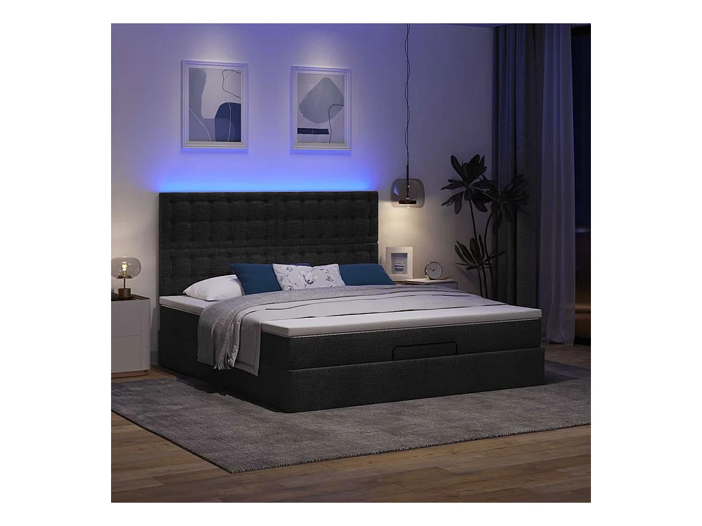 Cadre de lit ottoman avec matelas noir 180x200cm tissu
