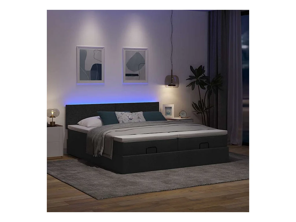 Lit ottoman avec matelas et LED Noir 180x200cm tissu