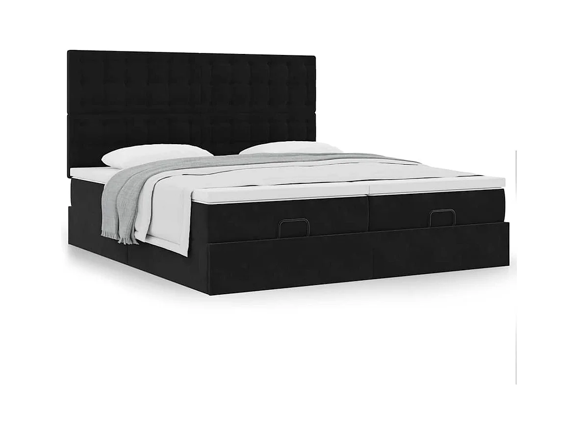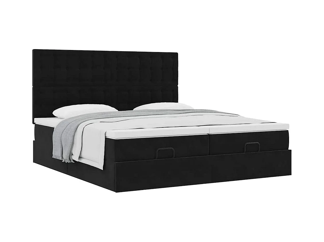 Cadre de lit ottoman avec matelas noir 180x200cm velours