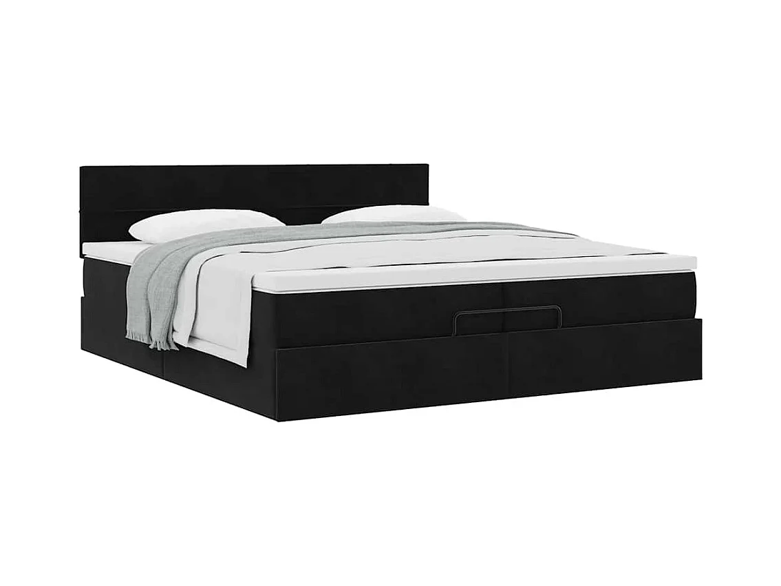 Cadre de lit ottoman avec matelas noir 200x200cm velours