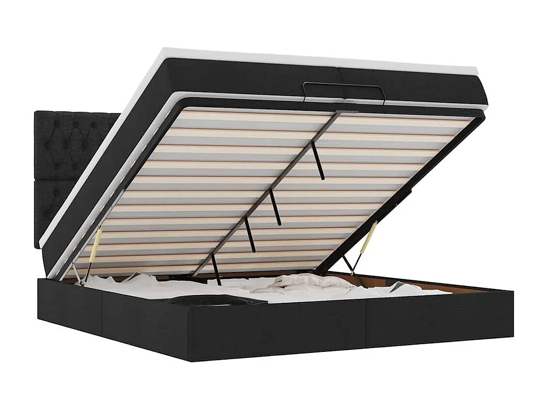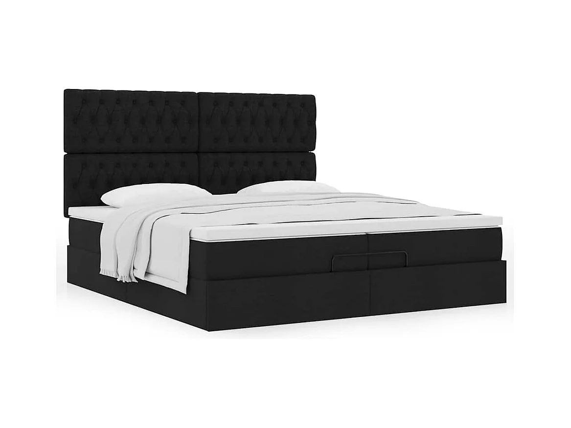 Cadre de lit ottoman avec matelas noir 200x200cm tissu