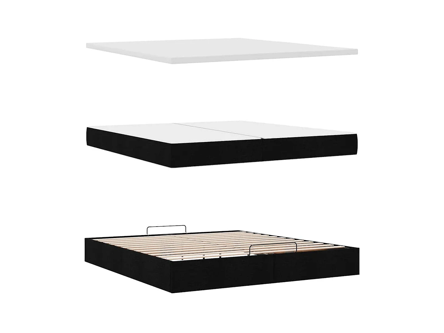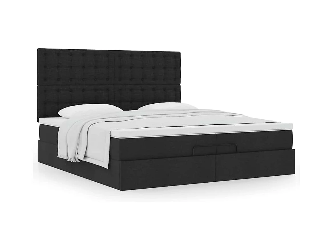Cadre de lit ottoman avec matelas noir 200x200cm tissu