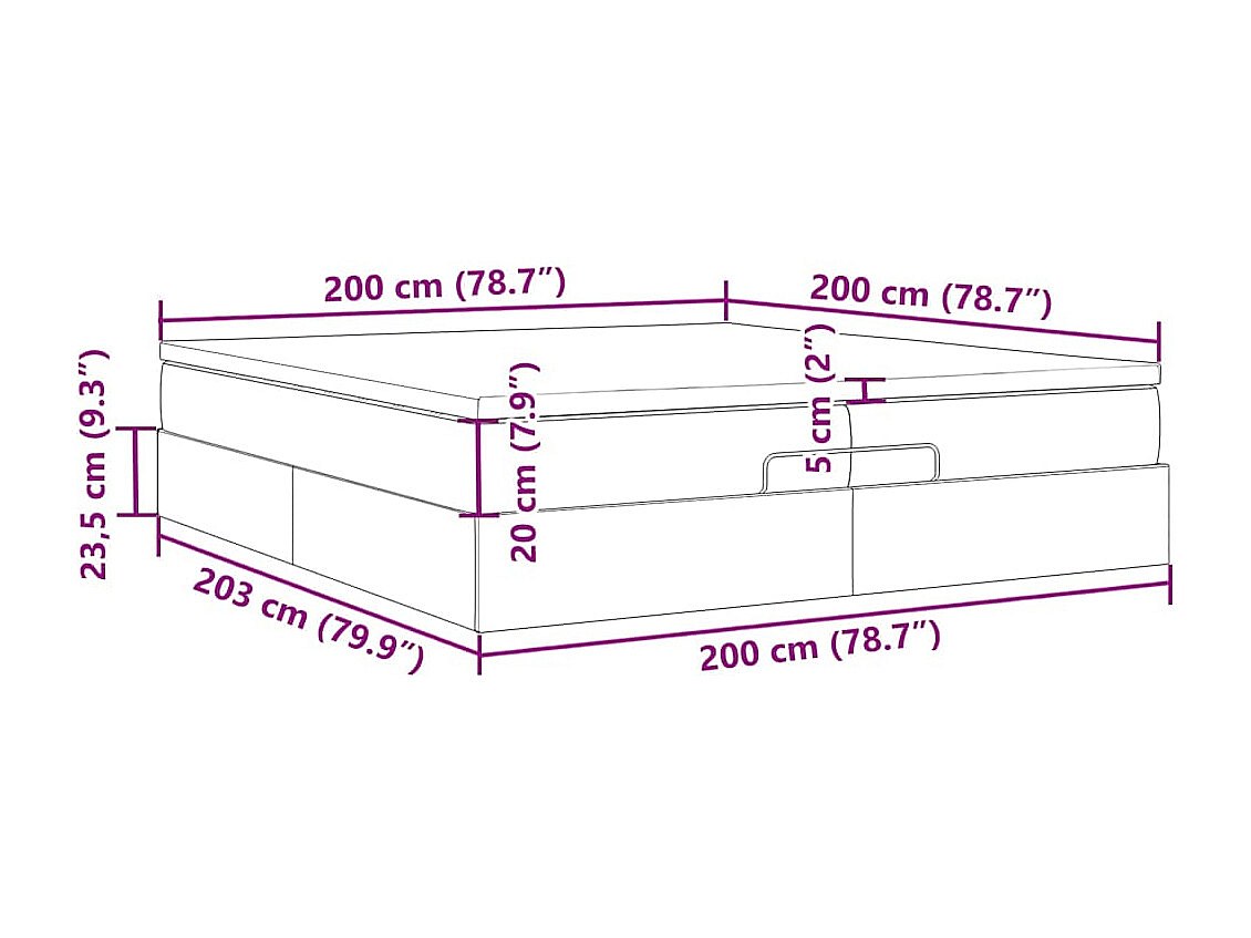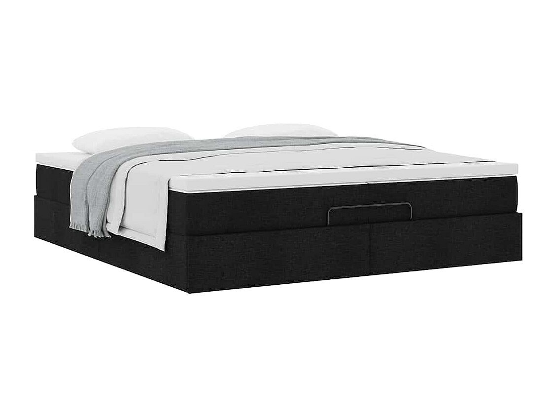 Cadre de lit ottoman avec matelas noir 200x200cm tissu