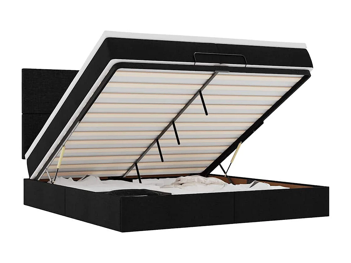 Cadre de lit ottoman avec matelas noir 200x200cm tissu
