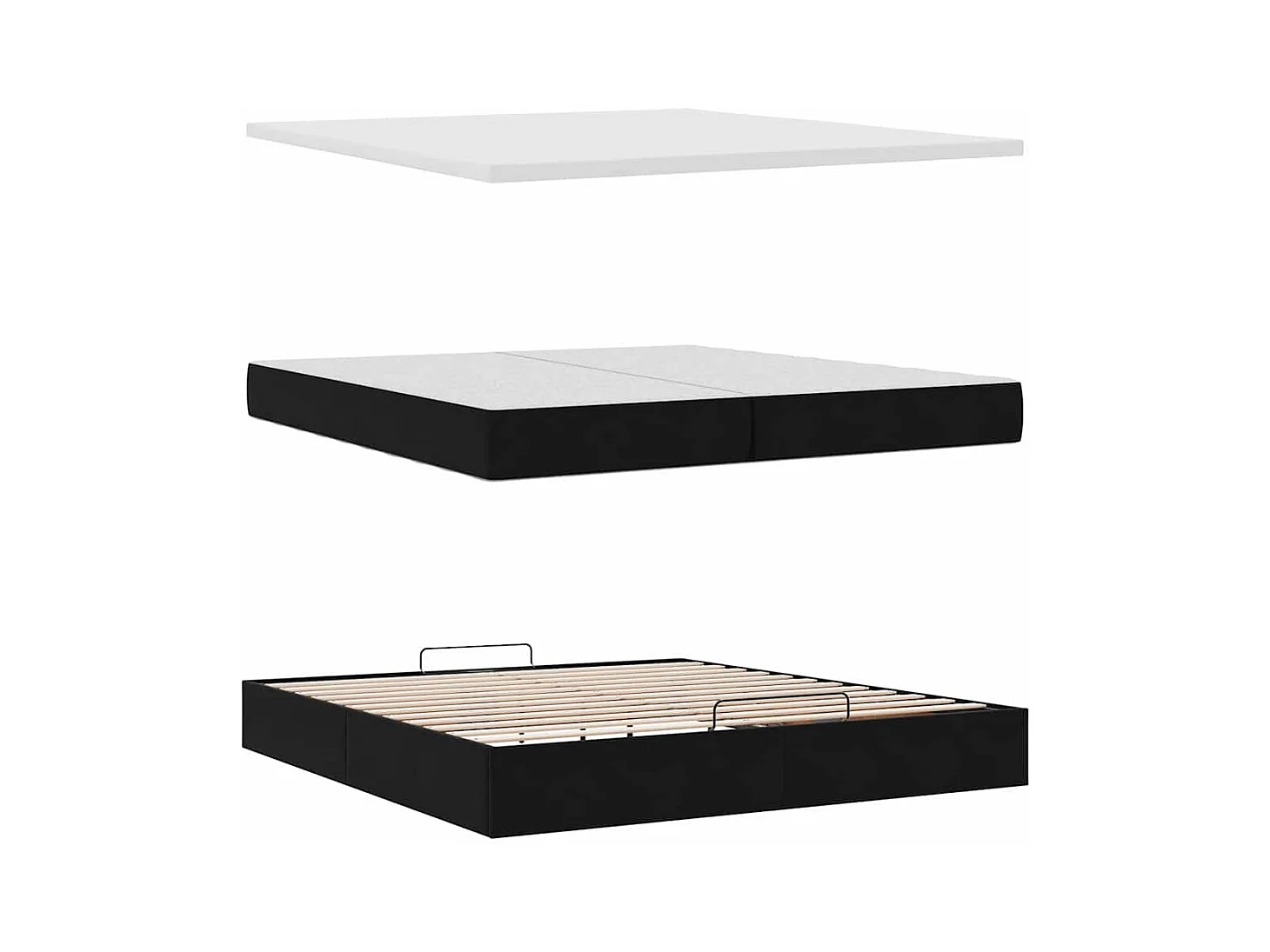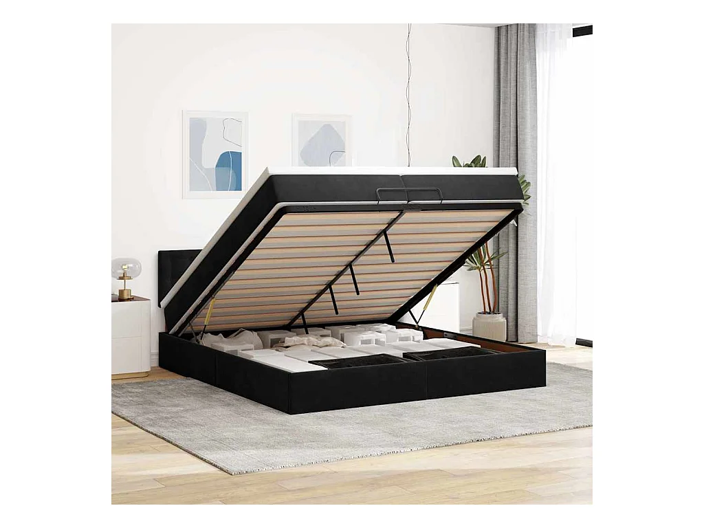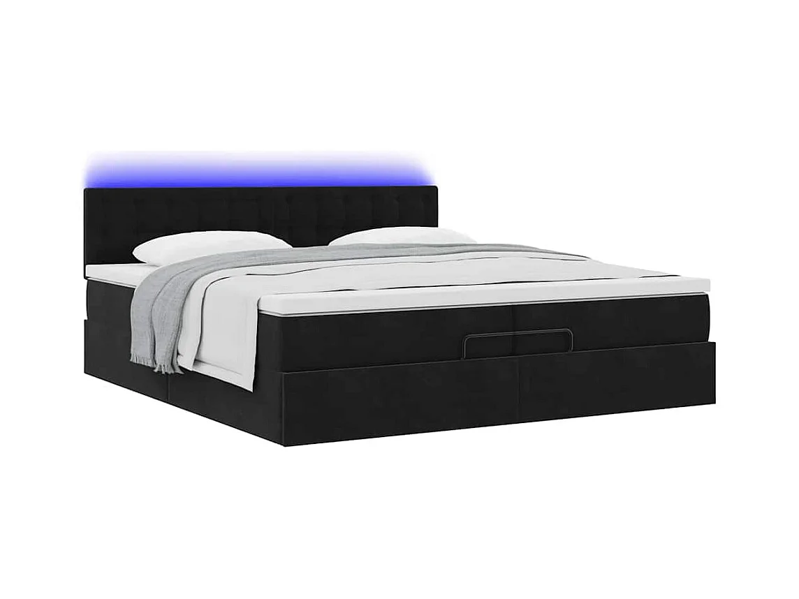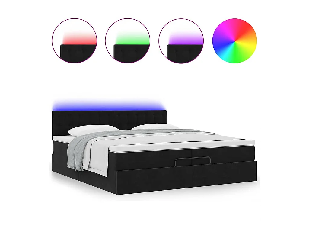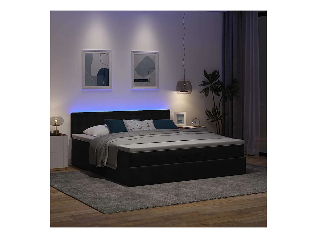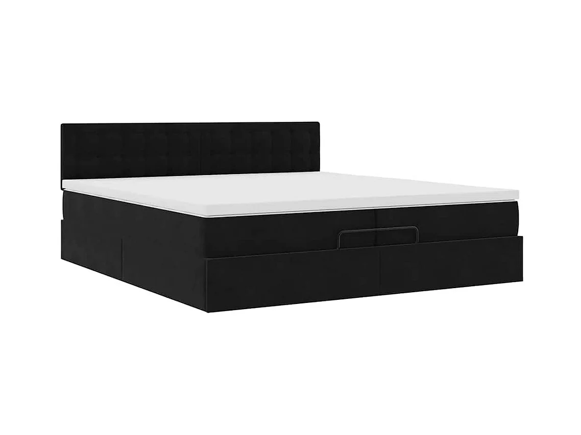 Cadre de lit ottoman avec matelas noir 200x200cm velours