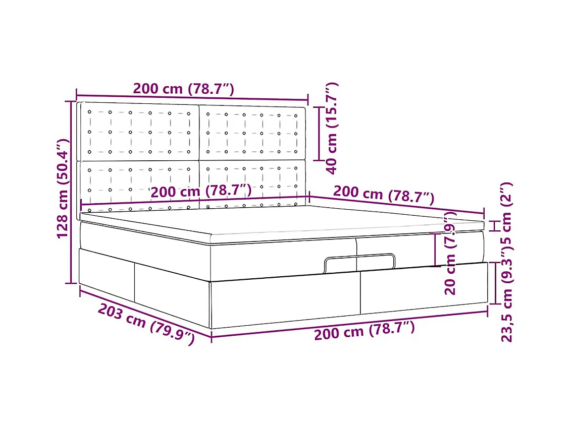 Cadre de lit ottoman avec matelas noir 200x200cm velours