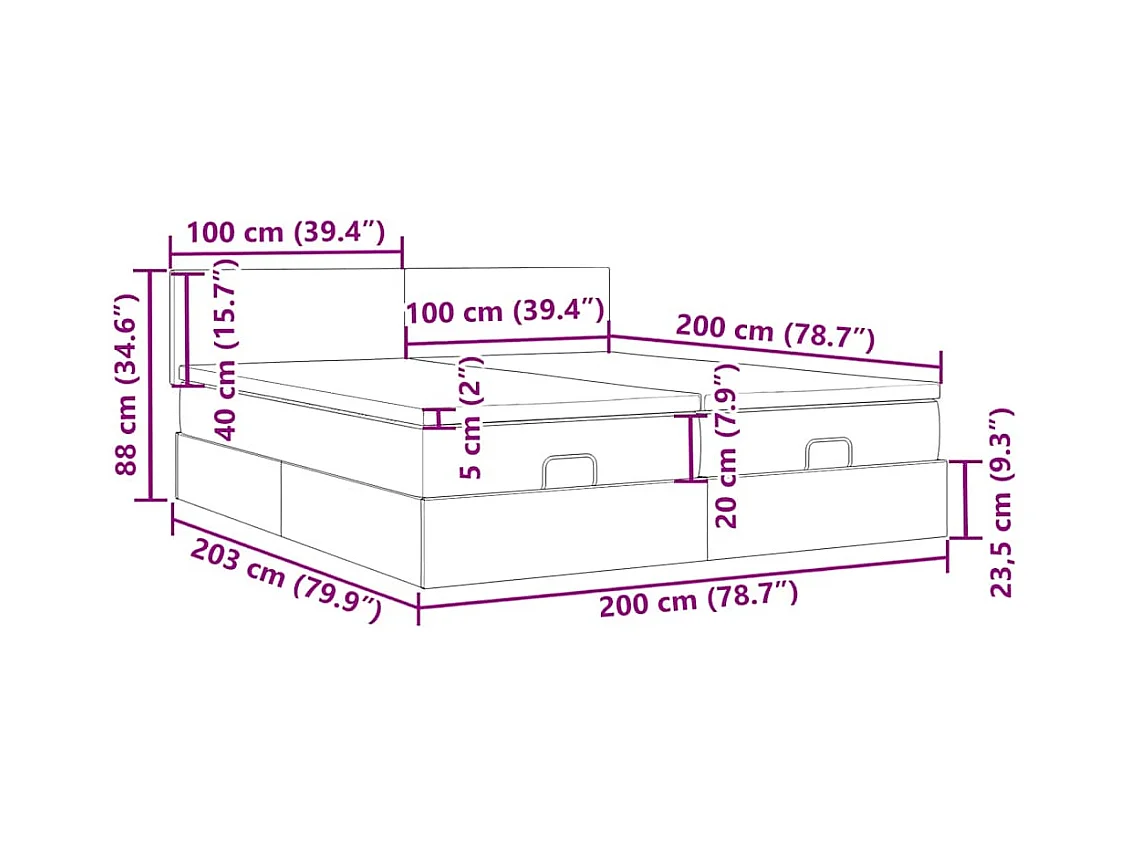 Cadre de lit ottoman avec matelas noir 200x200 cm similicuir