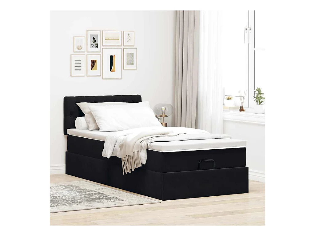 Cadre de lit ottoman avec matelas noir 80x200 cm velours