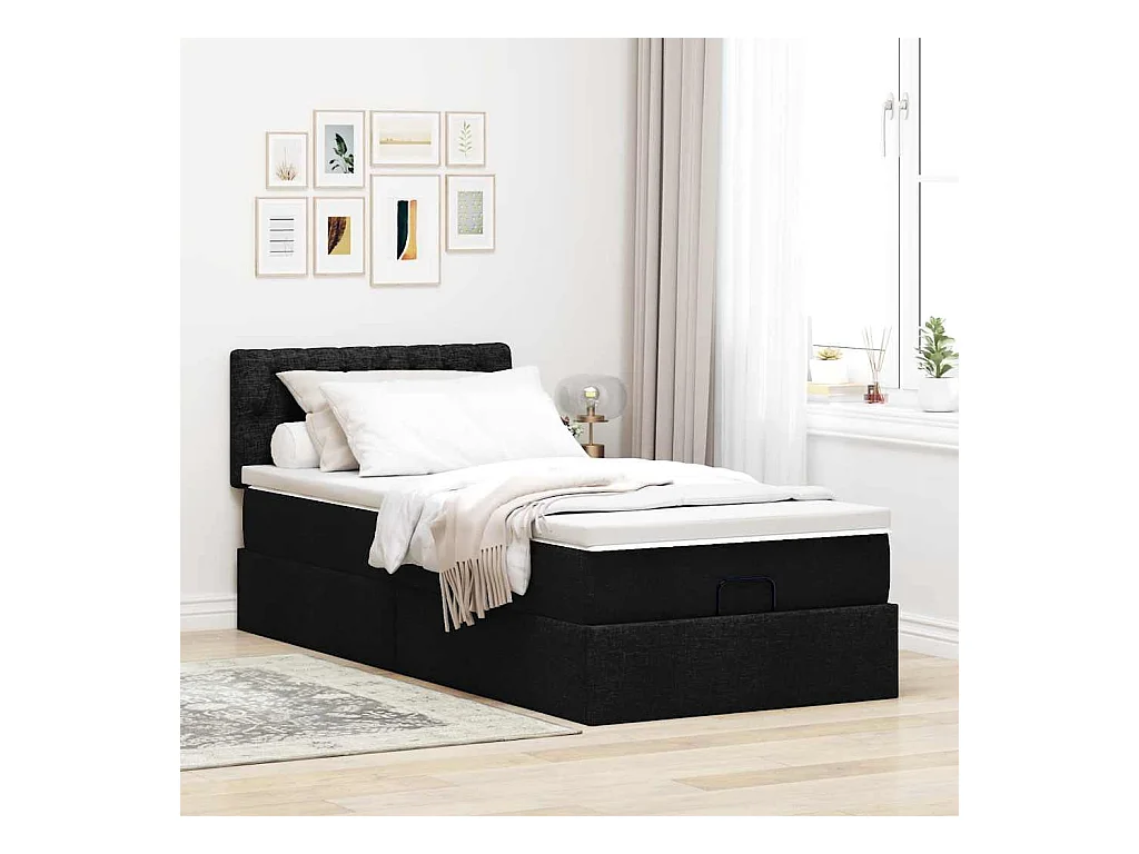 Cadre de lit ottoman avec matelas noir 90x200 cm tissu