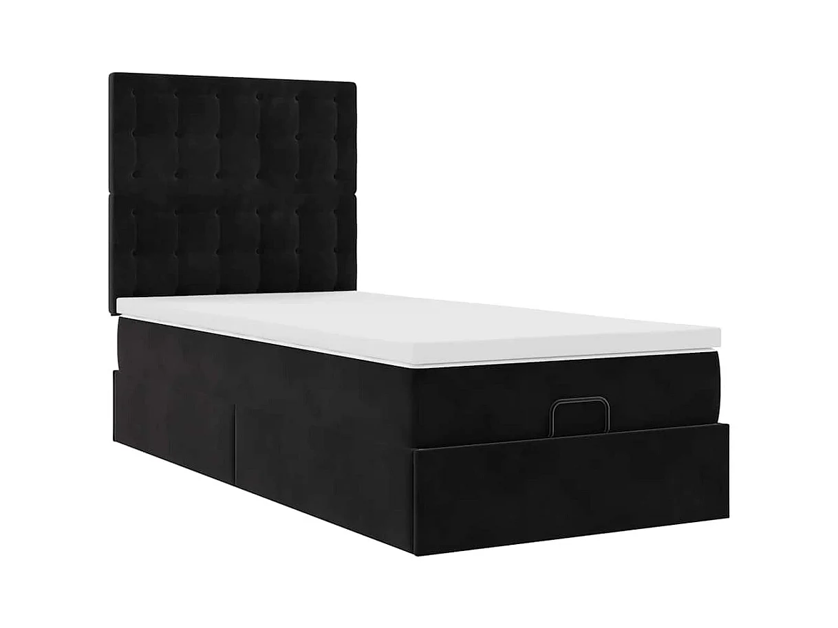 Cadre de lit ottoman avec matelas noir 90x200 cm velours