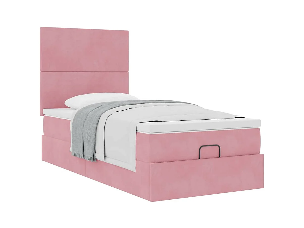 Cadre de lit ottoman avec matelas rose 100x200 cm velours