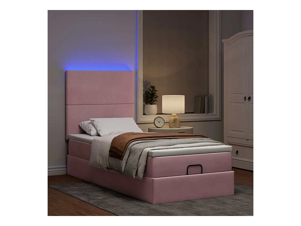 Cadre de lit ottoman avec matelas rose 100x200 cm velours