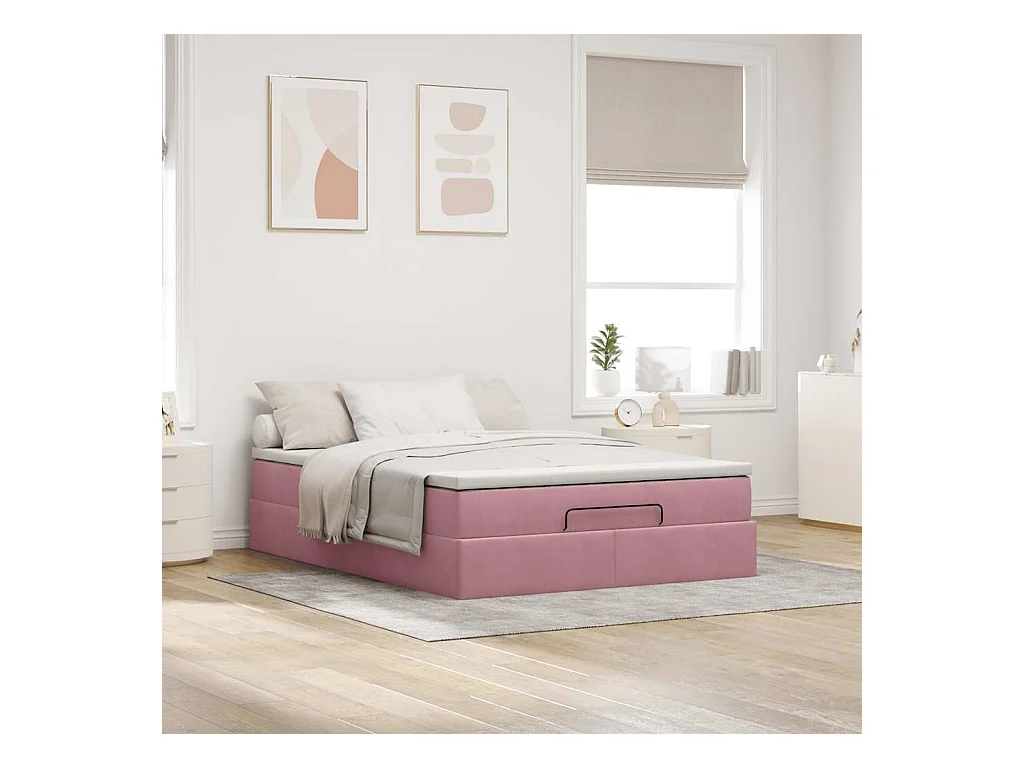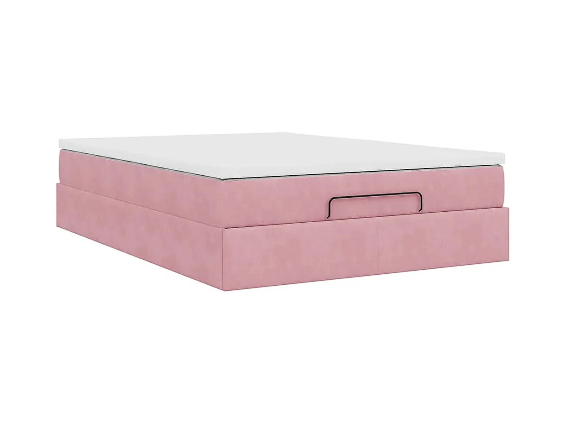Cadre de lit ottoman avec matelas rose 140x190 cm velours