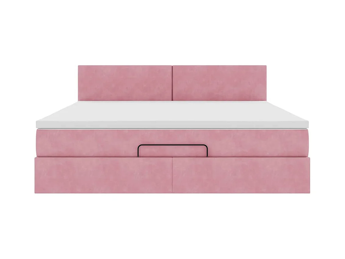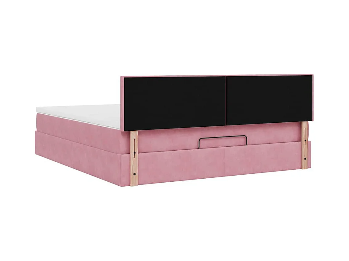 Cadre de lit ottoman avec matelas rose 160x200 cm velours