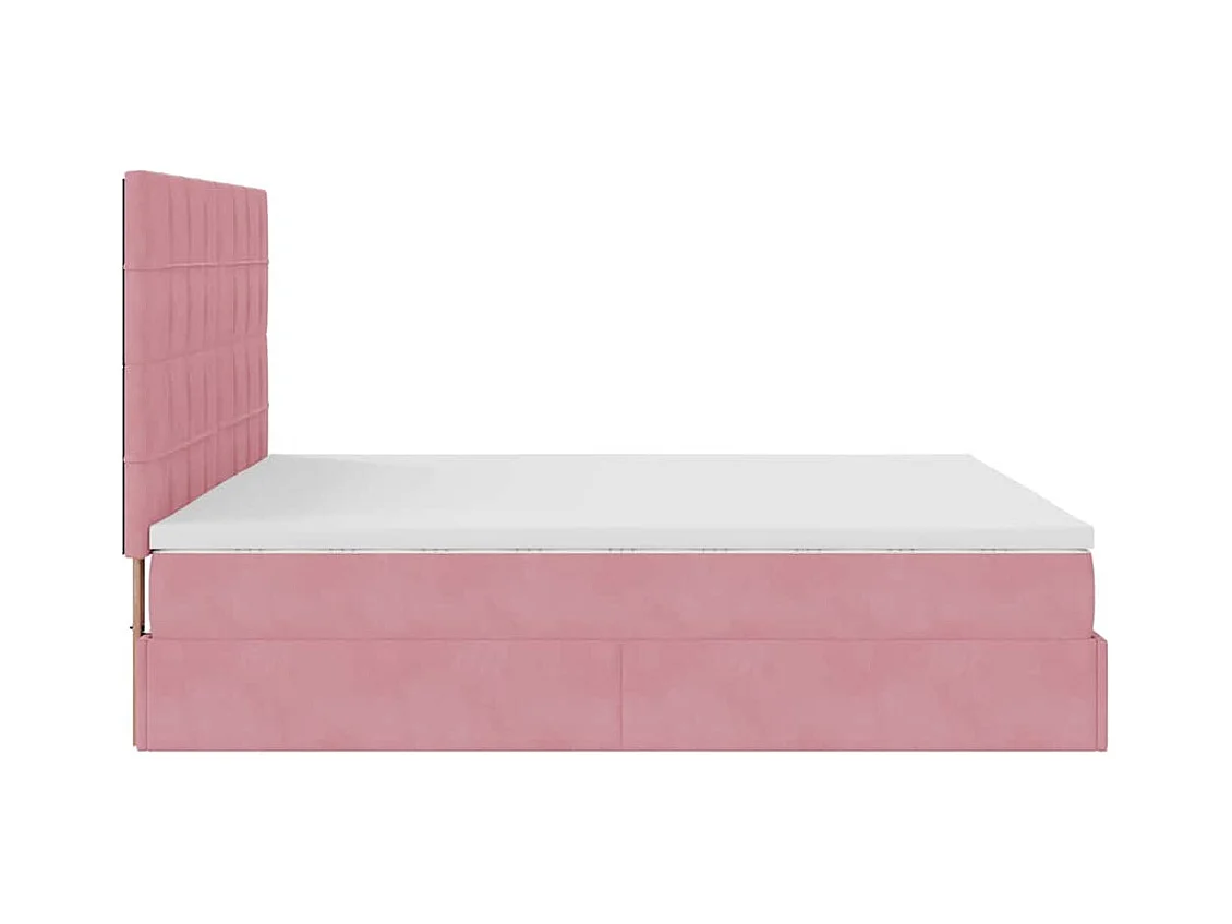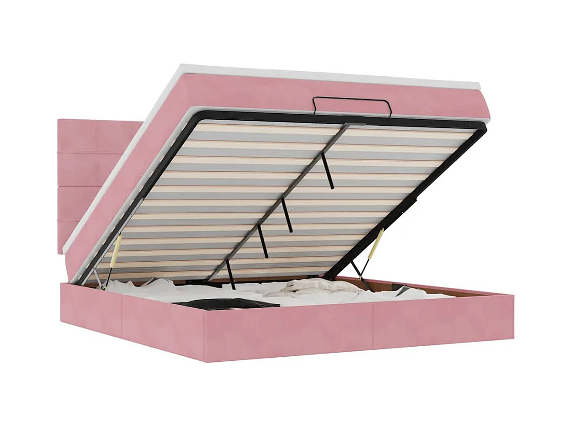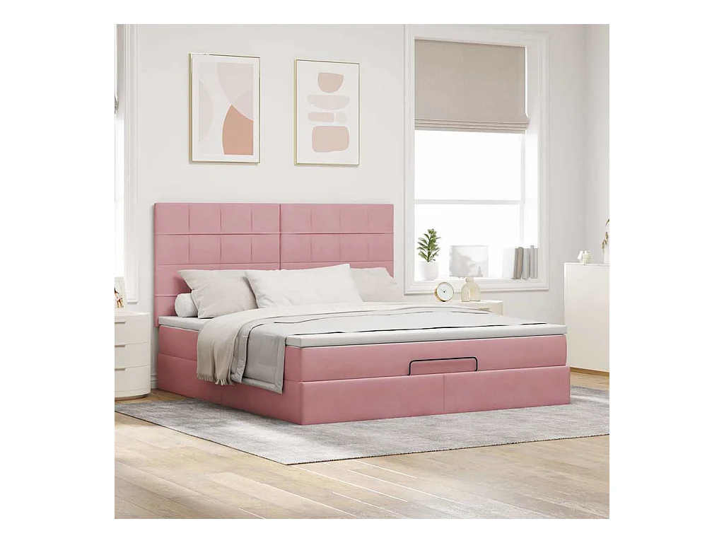 Cadre de lit ottoman avec matelas rose 160x200 cm velours