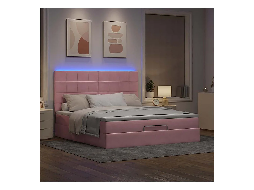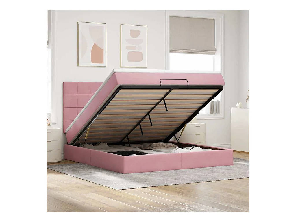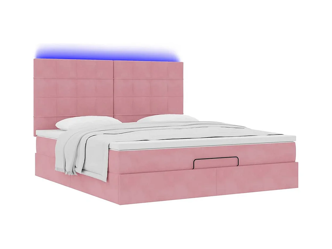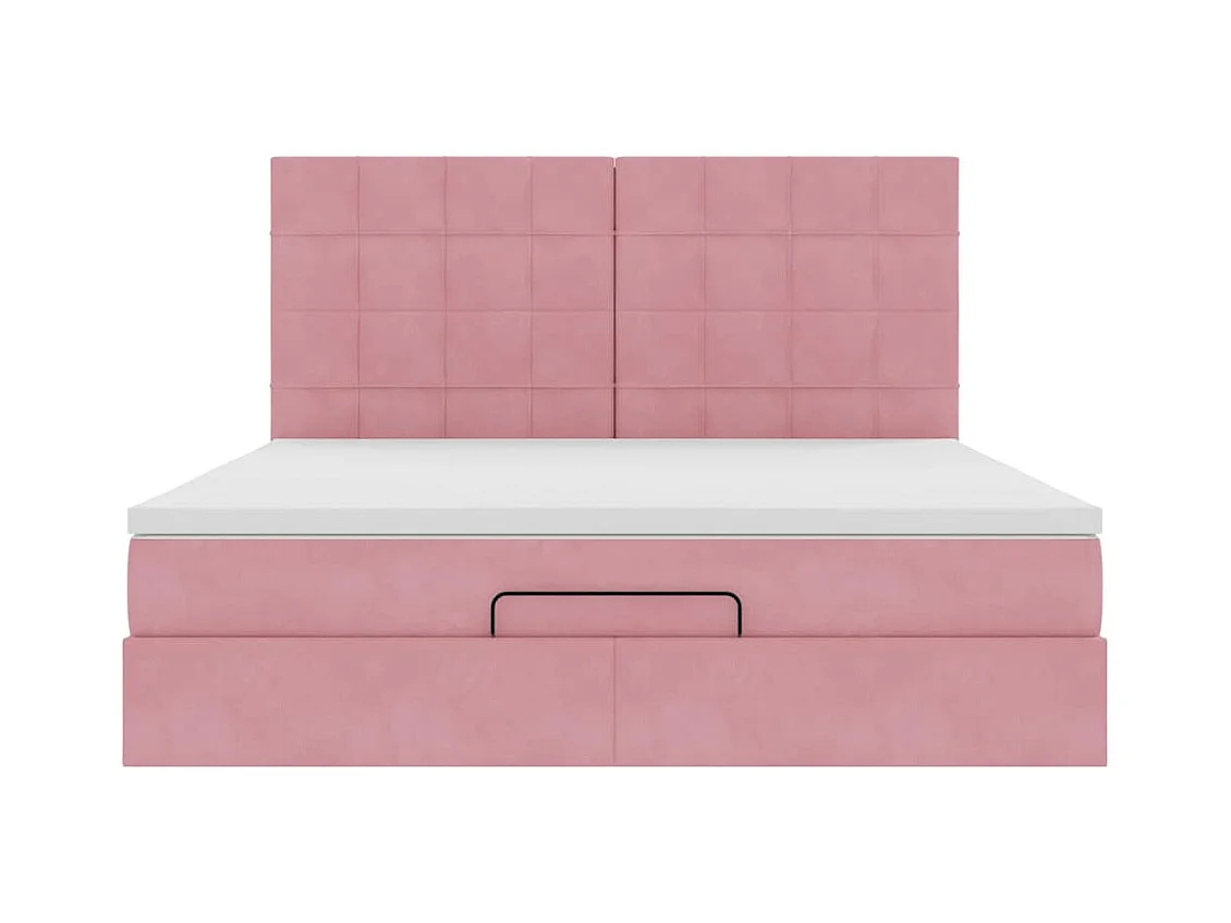 Cadre de lit ottoman avec matelas rose 160x200 cm velours