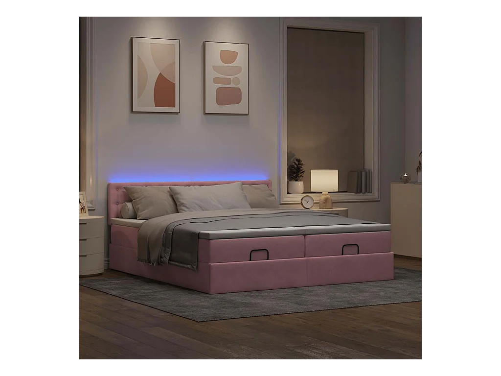 Cadre de lit ottoman avec matelas rose 180x200 cm velours