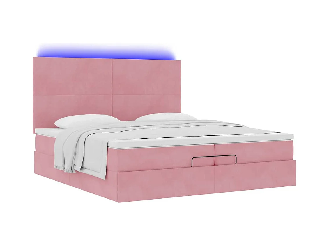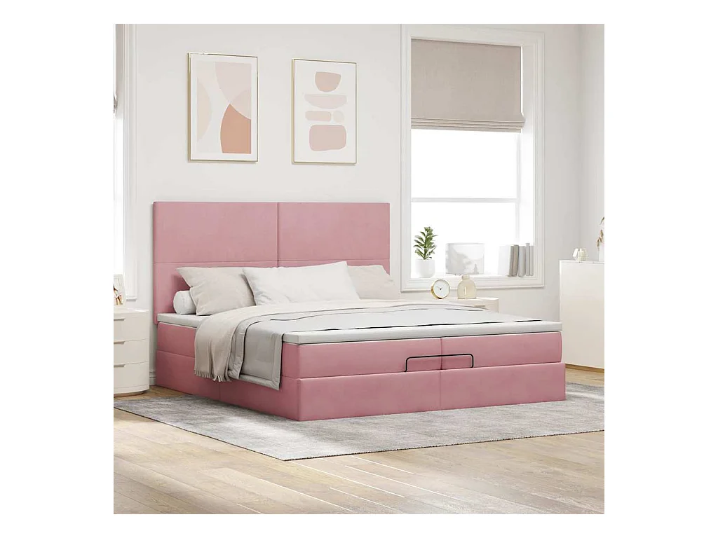 Cadre de lit ottoman avec matelas rose 200x200 cm velours