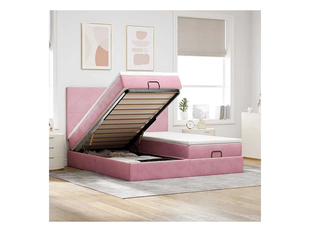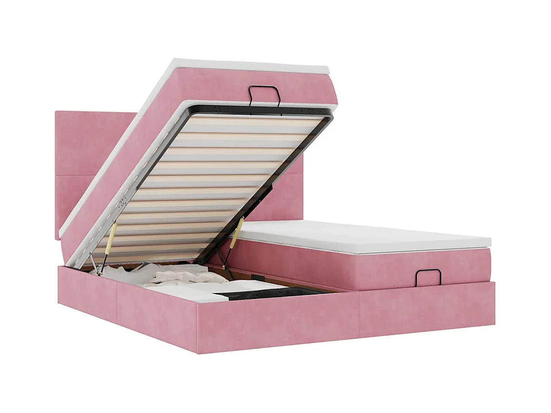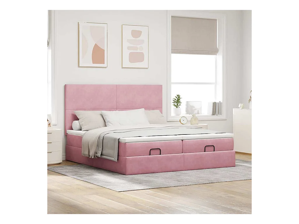 Cadre de lit ottoman avec matelas rose 200x200 cm velours