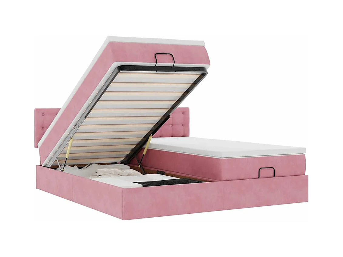 Cadre de lit ottoman avec matelas rose 200x200 cm velours