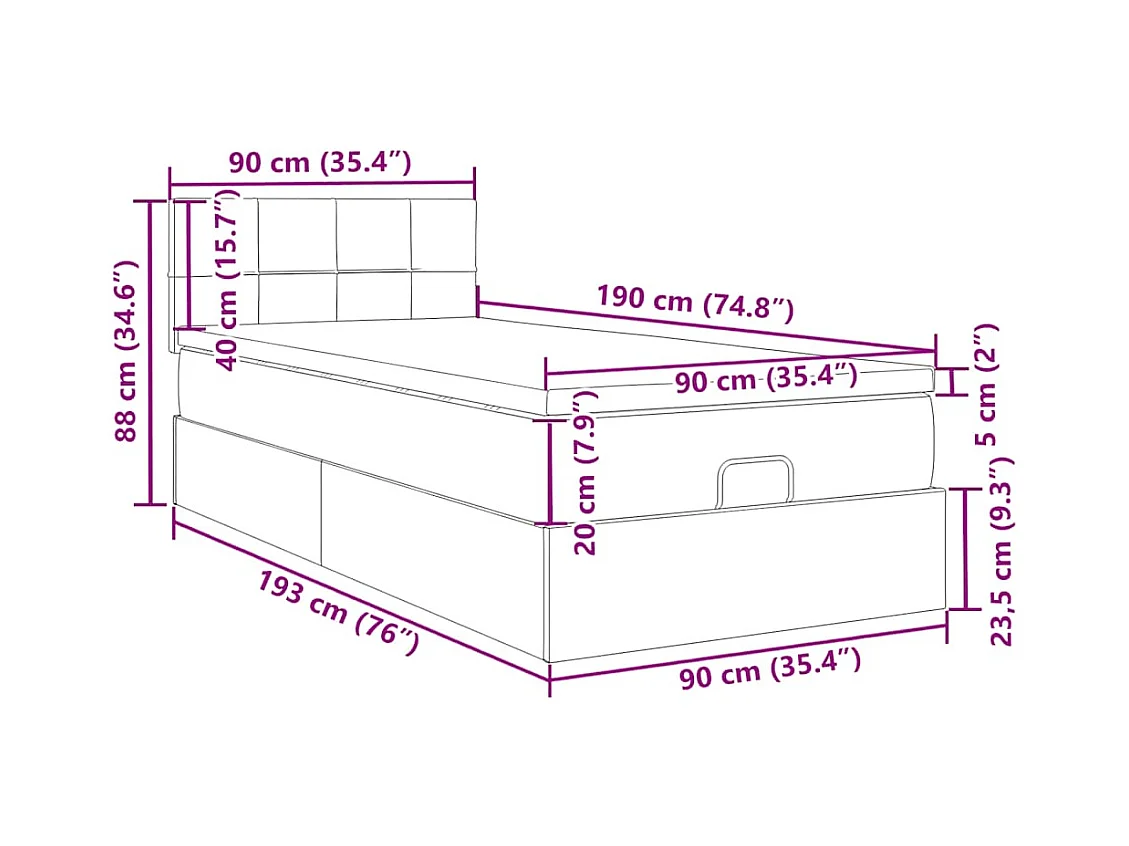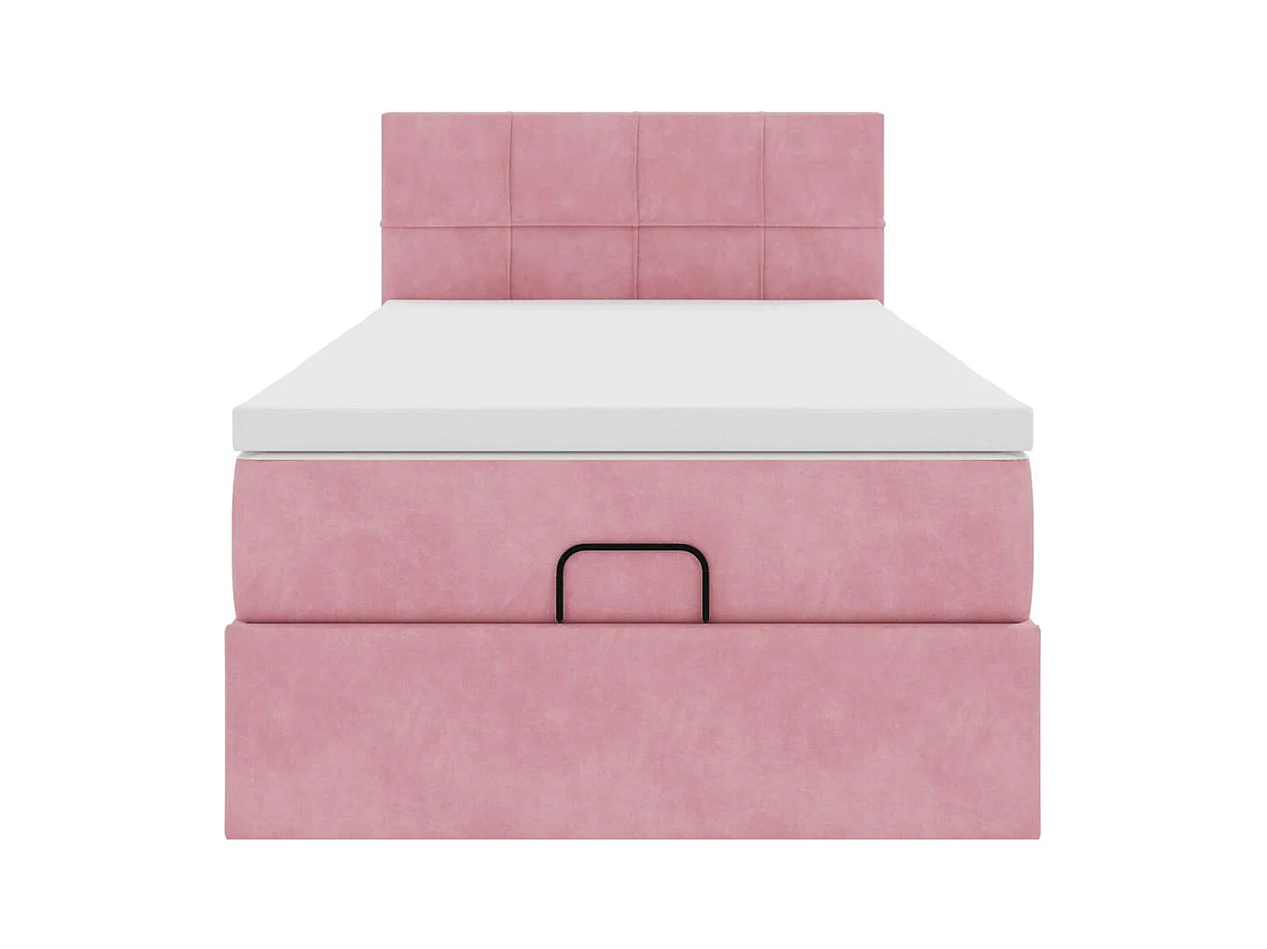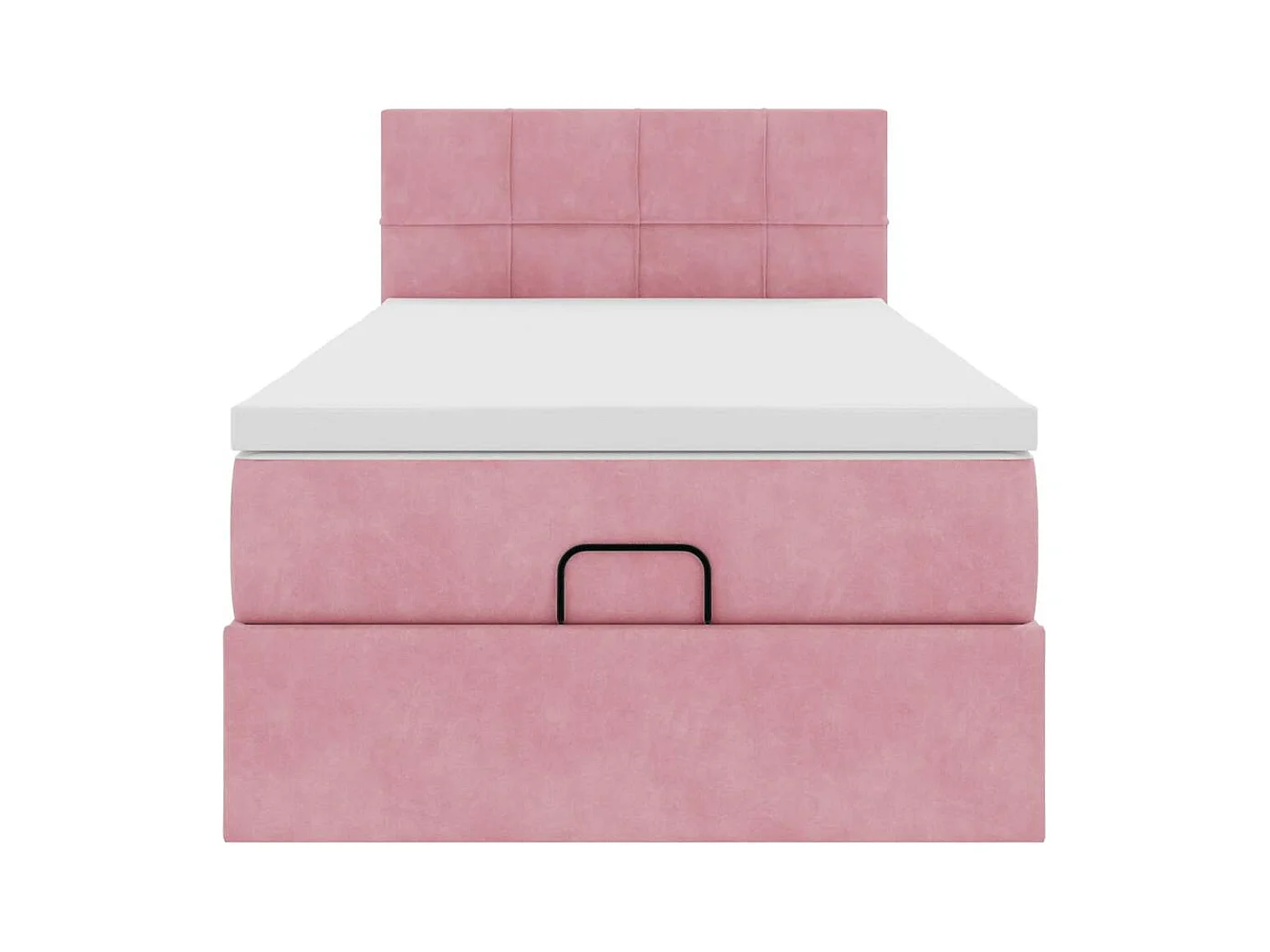 Cadre de lit ottoman avec matelas rose 90x190 cm velours