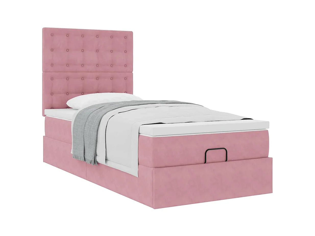 Cadre de lit ottoman avec matelas rose 90x200 cm velours