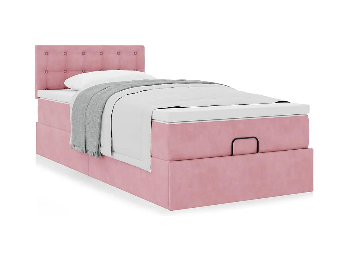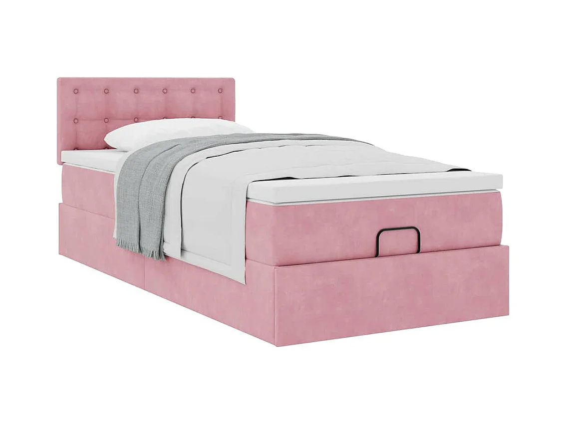 Cadre de lit ottoman avec matelas rose 90x200 cm velours
